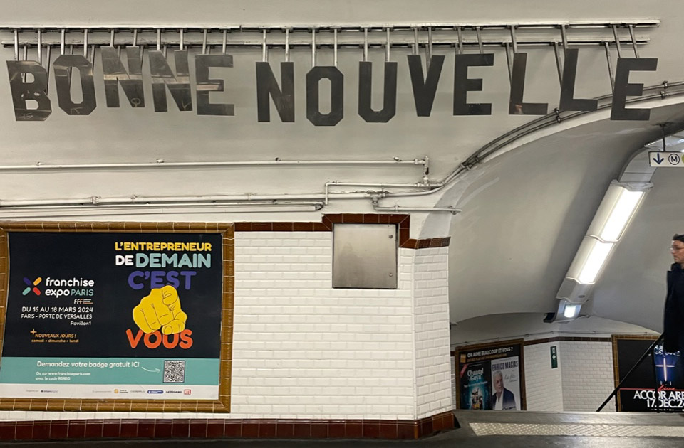 Bonne Nouvelle駅。こんなメタルのオブジェで駅名が書いてあることに初めて気がつきました。