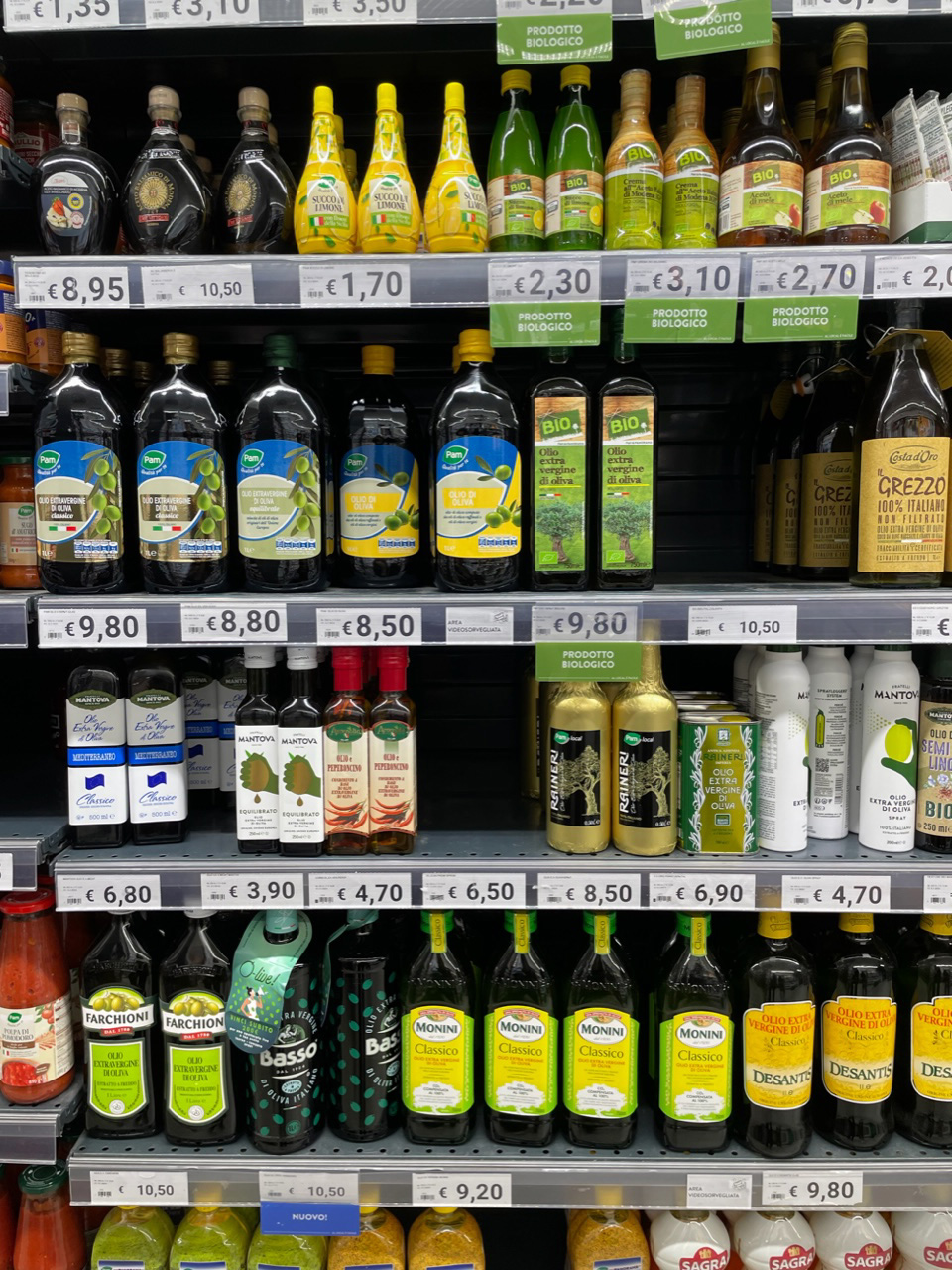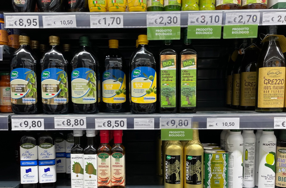 ミラノのスーパー。さすが豊富なオリーブオイルバリエーション。