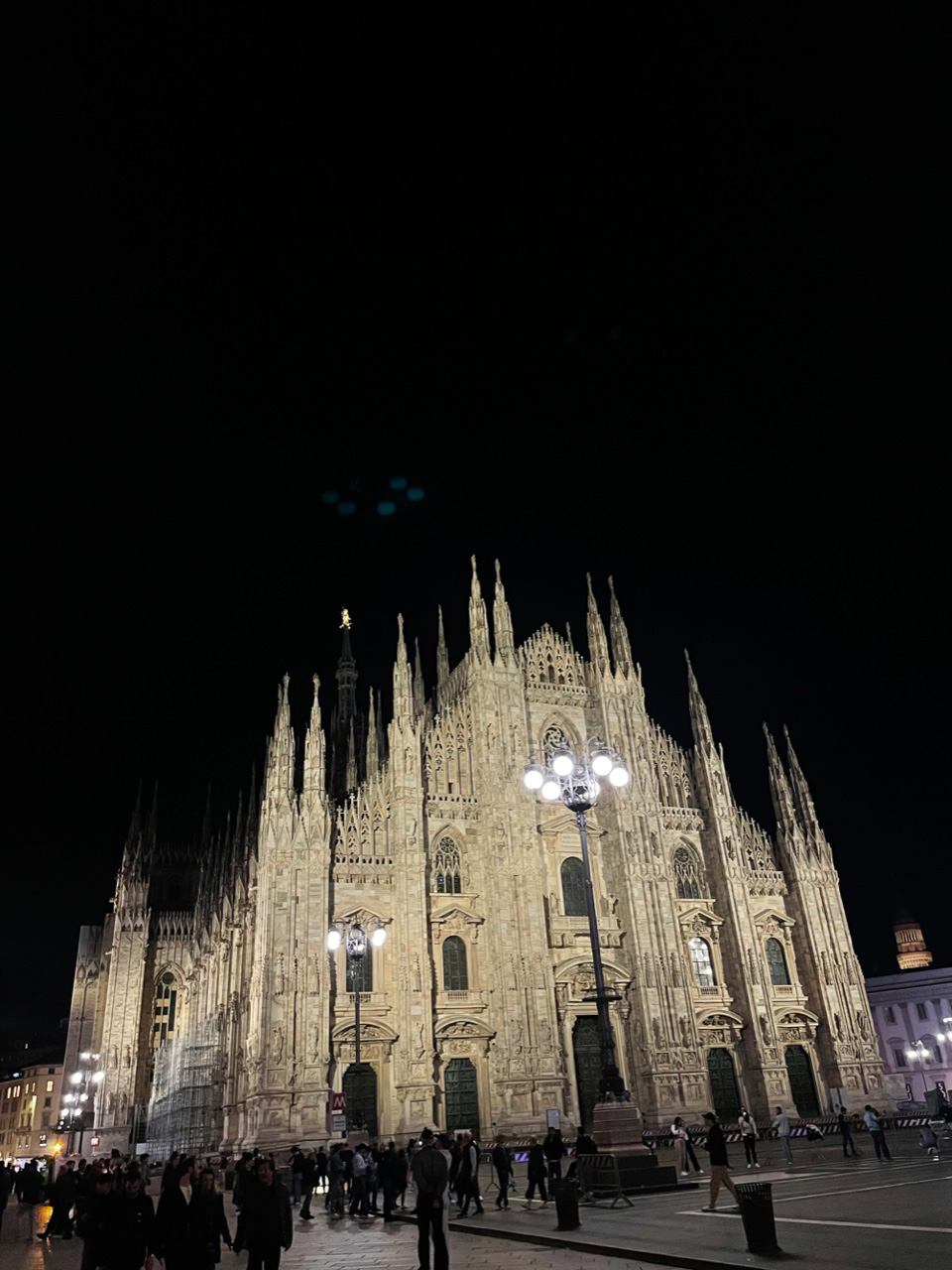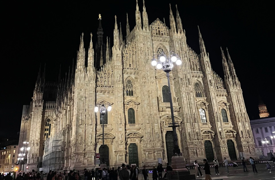 夜のドーモ。パリから飛行機で1時間半のミラノですが、光の色や気候が全然違うことに驚きます。