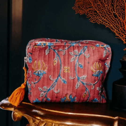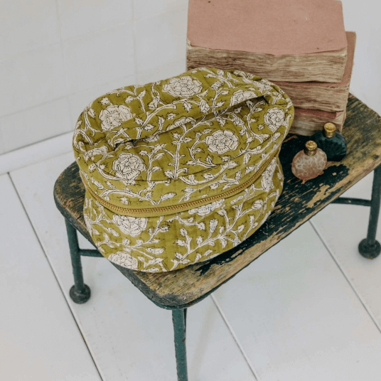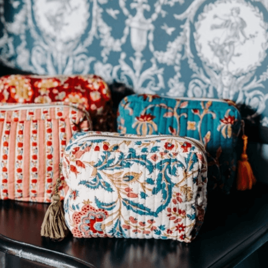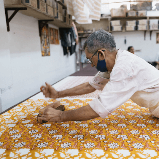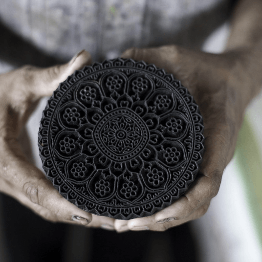 JAMINIの製品はすべて手作業で作られており、インドの職人による伝統技術が息づいています。特に注目すべきは「ブロックプリント」という技法で、木を彫って作ったスタンプを使い、ひとつひとつ手で捺して模様を表現しています。手仕事だからこそ生まれる「不完全さ」は、製品に独特の風合いと温かみを与え、機械生産では得られない魅力を生み出しています。また、素材選びや色使いにもこだわりがあり、自然素材と調和した色彩も特徴です。