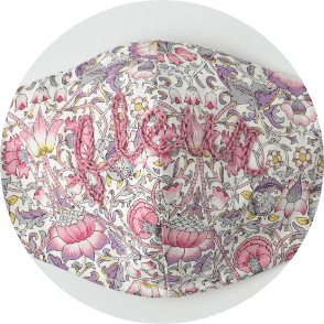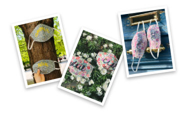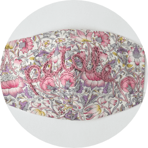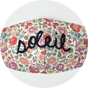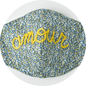 花々が咲くパリを連想いただけるようなリバティファブリックのマスクを、国内外で活躍するパリ在住の刺繍作家KAORI EMBROIDERY.さんに作っていただきました。