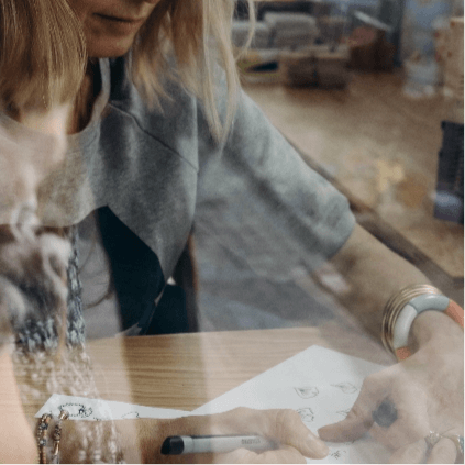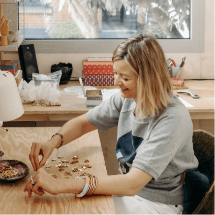 デザイナーのシャーロットは、もともとコスメや食品のデザインなどを手掛けていたグラフィスト(グラフィックデザイナー)。キャリアを積み、好きだったジュエリーのブランドを友人と立ち上げますが、友人は出産を機に別の仕事に。今は一人で活動しています。