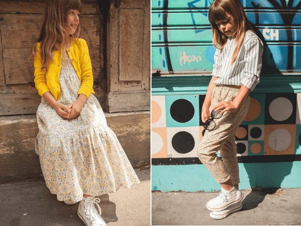 ルイ ルイーズのお洋服はクローゼットにあるシンプルなデニムやカーディガンとも好相性。何気ないコーディネートがパッとおしゃれにきまるのも、ファッションにこだわるパリのママに選ばれる理由かもしれません。