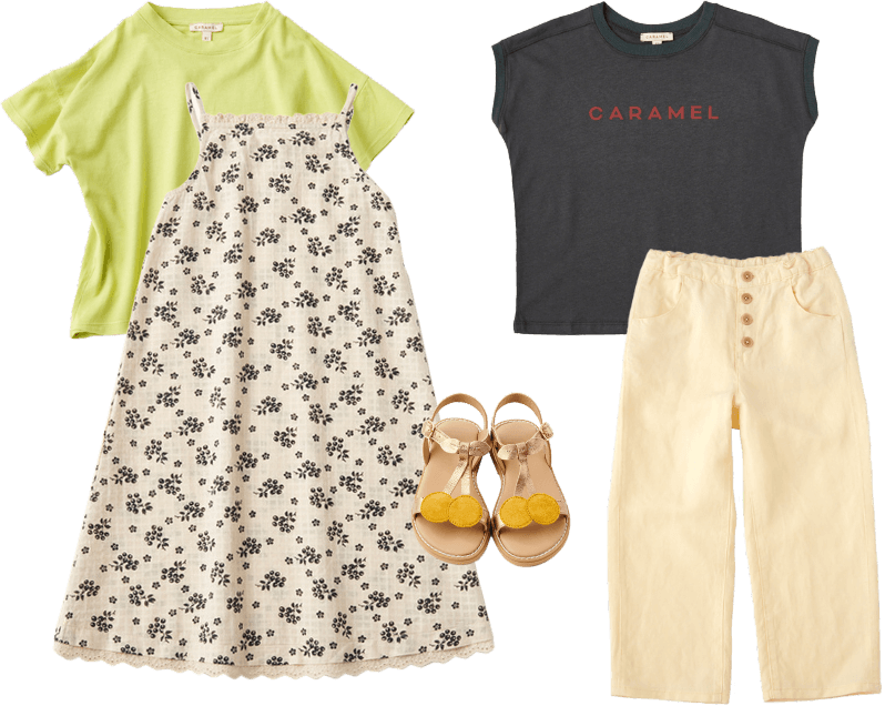 一枚でもOK!重ね着してもOK!のワンピースは夏旅のマストアイテム。お出かけ先やシーンに合わせてアレンジ自在。〈CARAMEL〉のアイテムは薄手でトランクの中でかさばらないのもうれしいポイント!