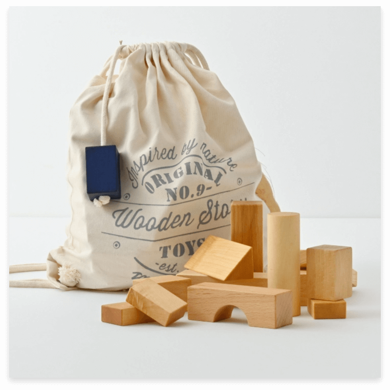 ブロックは巾着に入っているので、遊び終わったらお子さま自身でお片付けしやすいのもポイント。おしゃれなデザインなので、巾着のままポンっとリビングや子ども部屋に置いてあってもサマになります。センスが光るギフトとして喜ばれること間違いナシです。